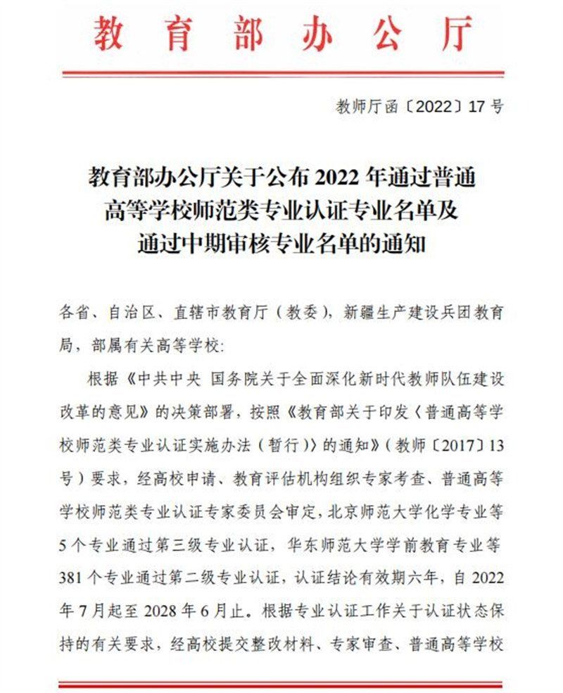 喜讯!我校又有三个专业通过师范类专业第二级认证