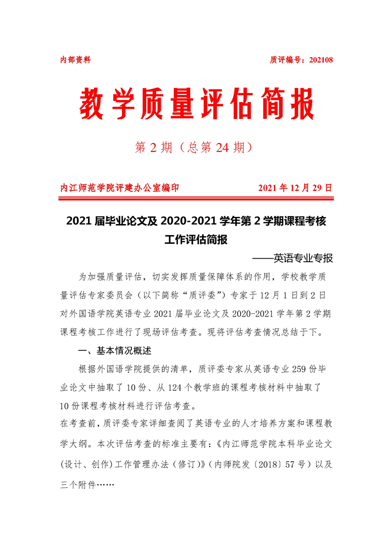 下一条:教学质量评估简报第23期——广播电视学专业2021届毕业论文及2020-2021学年第2学期课程考核工...