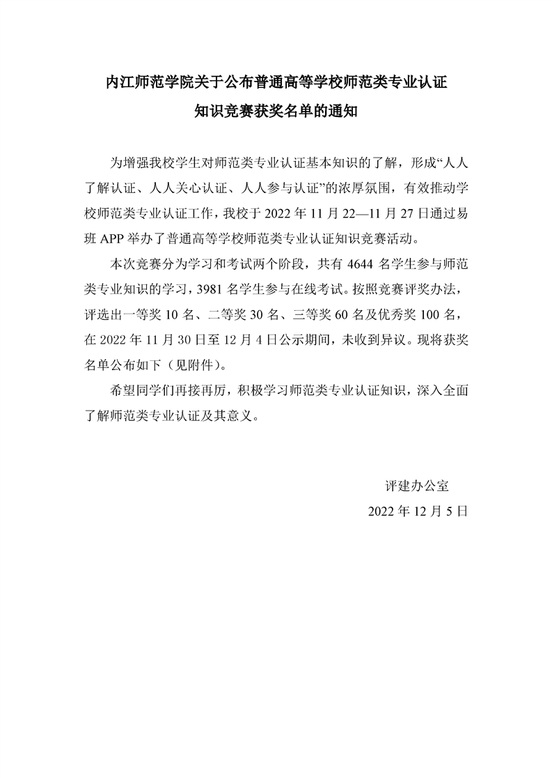 下一条:内江师范学院关于普通高等学校师范类专业认证知识竞赛结果的公示