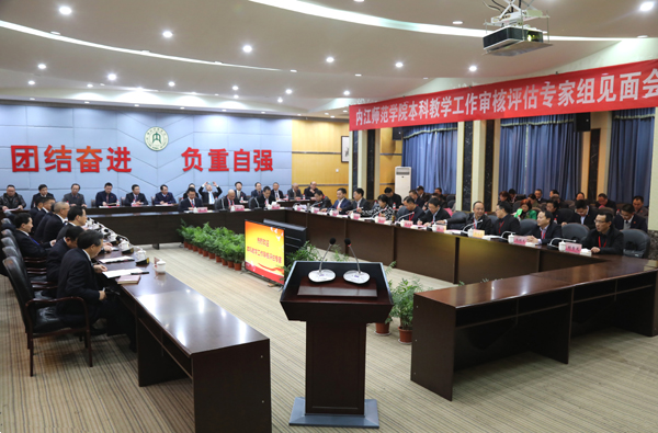 第一项议程,由专家组组长蒋永文教授对内江师范学院本科教学工作审核评估工作进行说明。他指出,专家组在进校之前,各位专家已对学校提交的自评报告进行了认真审读,形成了对学校办学及本科教学工作的整体印象。学校的自评报告严格按照本科教学工作审核评估的要求对本次审核评估所关心的“6+1”项目的内容及相互关联做了实事求是系统全面地回应。自评报告还对本科教学中存在的问题进行了细致梳理,这些问题既有当今高校普遍存在的,也有内江师范学院特有的。自评报告对问题既有深度剖析,也有针对问题的具体解决措施,较好地体现了办学主体严格的自我要求和理性自觉。