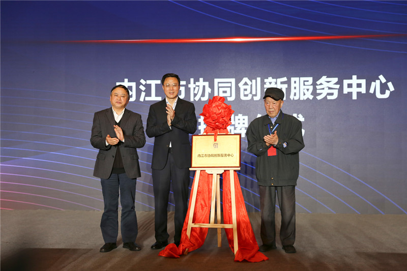 致辞结束后,余先河、张锡祥、陈晓春共同为内江市协同创新服务中心进行了揭牌。