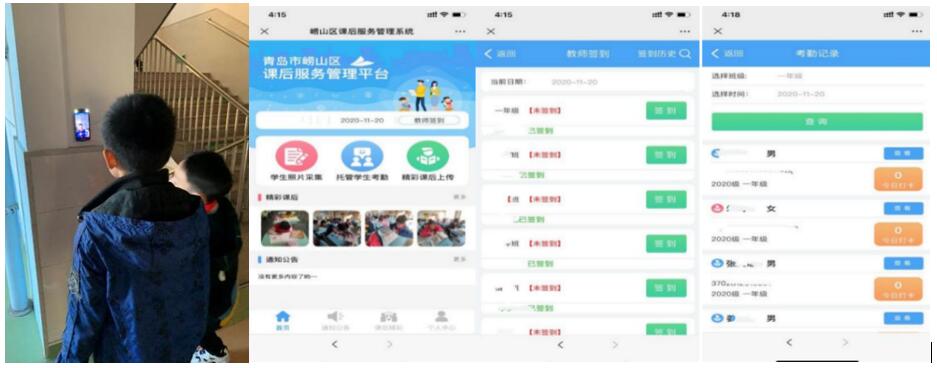 崂山区运用生物识别技术,将人脸识别技术与校园数据系统相结合,研究推出了人脸识别考勤机,应用于课后托管的考勤(如图2所示),避免大量的纸质考勤表的同时减少了教师工作量,也让学生课后托管的安全性得以提高。