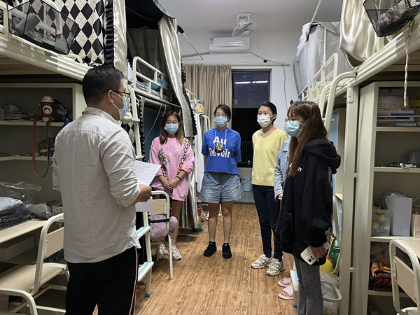 9月初,内江市出现新型冠状病毒肺炎本土病例,防疫形势严峻复杂。为切实保障广大师生身体健康和生命安全,配合属地疫情防控要求,经学校疫情防控领导小组研究决定,全体干部职工原则居家办公,一律不得进入校园,组织校领导、中层干部、辅导员及教师到校值班值守,与学生“同吃同住”,并对校园施行静默管理,严防疫情传播风险,为校园防疫筑牢安全屏障。学院在学校疫情防控总体要求下,党委副书记吴籽龙带队,组织在校值班辅导员、学生党员、学生干部志愿者积极作为,扎实做好疫情防控工作,为在校学生暖心服务,全力守护在校生健康平安。