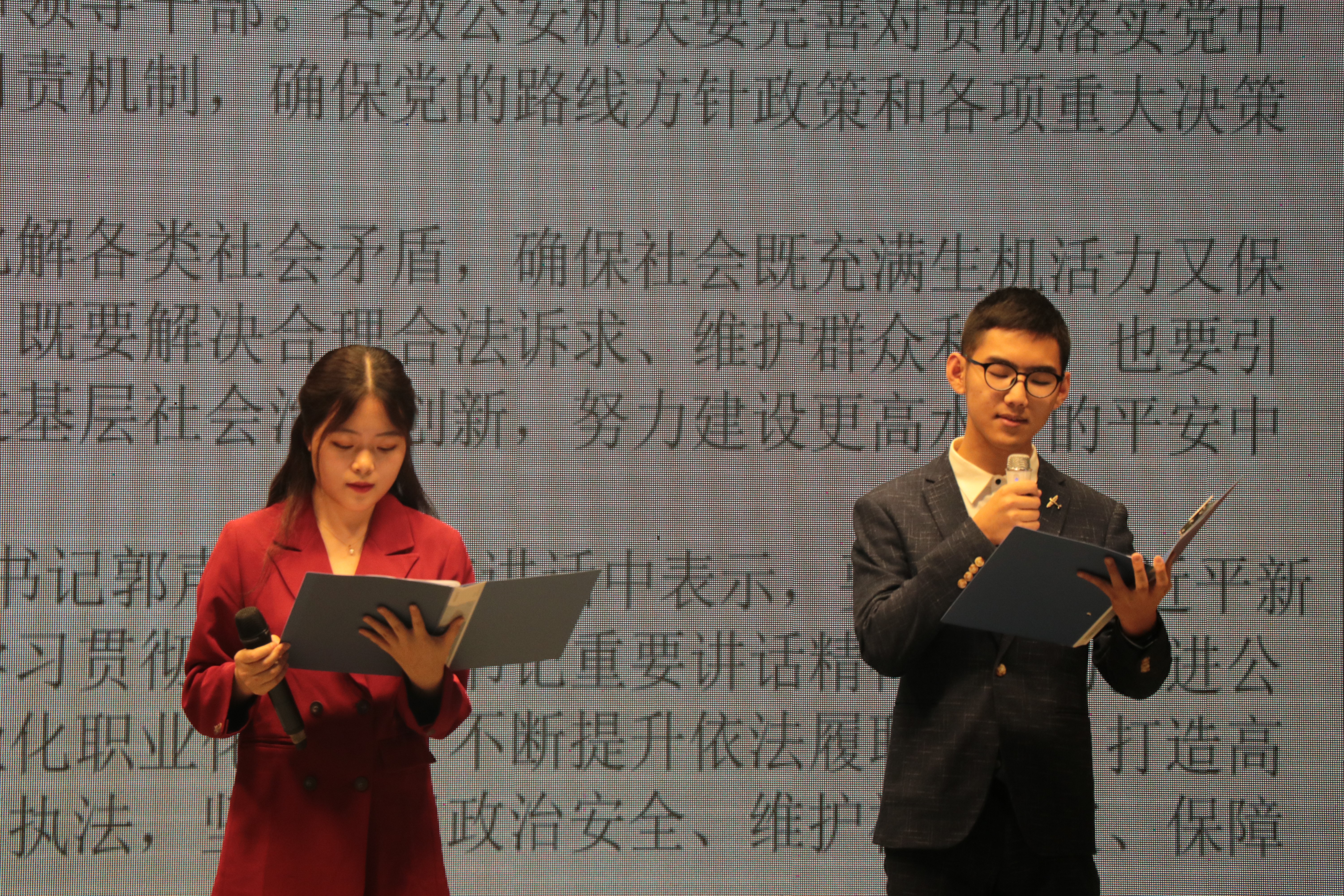第一项表演为诗歌朗诵,谢平军同学朗诵的《将进酒》振奋人心,感情此起彼伏,颂出诗人的壮志难酬。丁舒同学再次朗诵《永生的和平鸽》,加上优美的配乐,展现出作者对和平的无限向往。以及孙佳宇、裴佳睿、杨久久、段王卓、王海琼、彭睿等几位同学的朗诵也同样精彩纷呈,引人夺目。