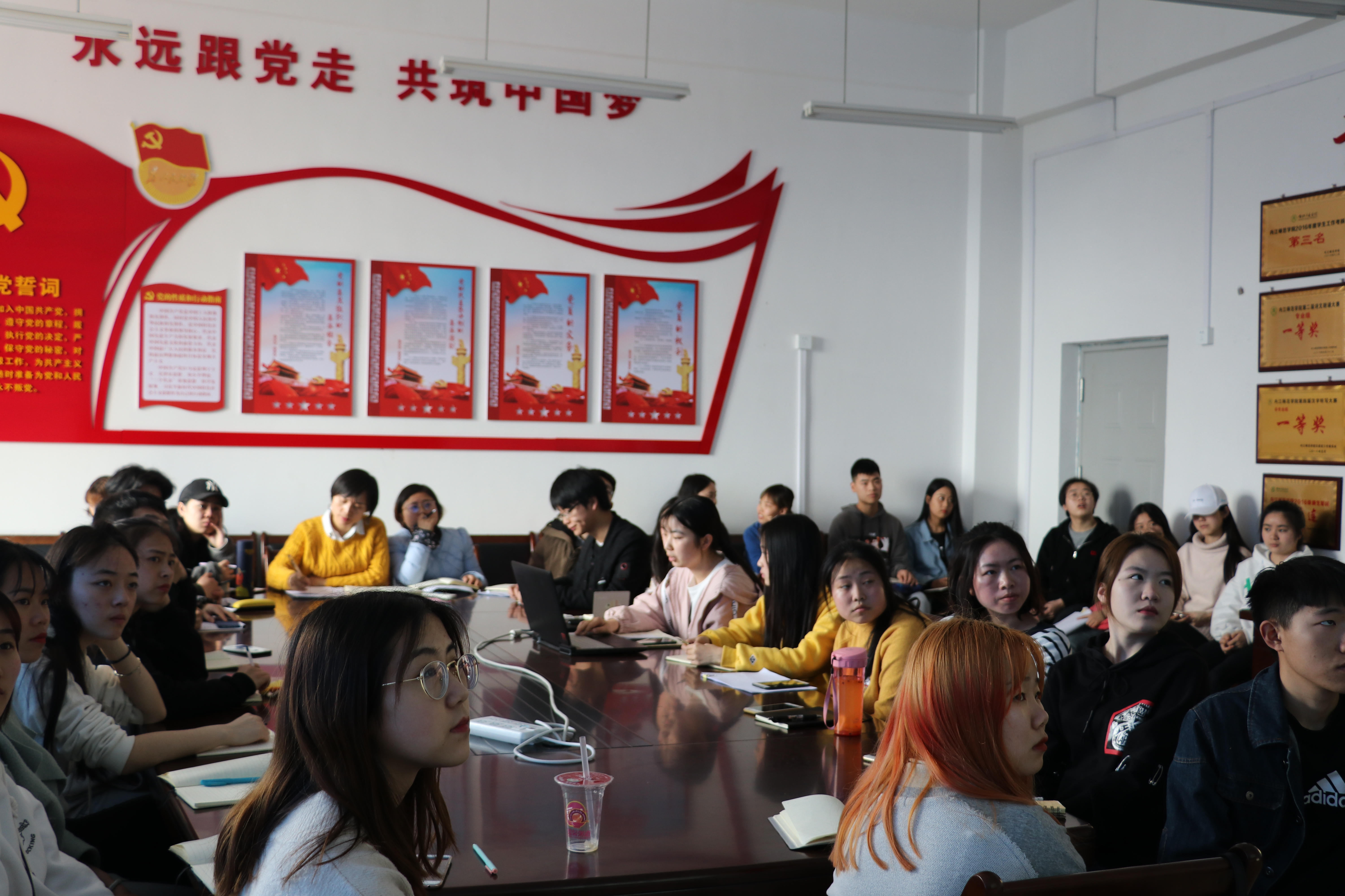 2019年3月20日中午12点,为推动大学生自身建设,纪念五四运动,搞好团建设,我院在第三实验大楼412会议室开展了以“青春心向党,建功新时代”为主题的团课。本次团课由团总支副书记刘敬怡主讲,团总支书记刘丽娜、辅导员宋秋莹共同出席,我院团总支学生会全体学生干部及各班团支书参加。