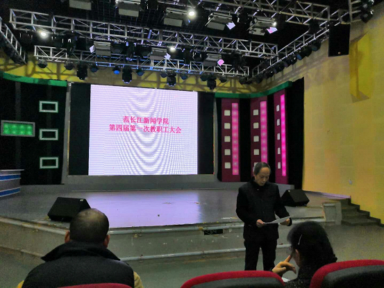 我院于12月17日在范长江新闻学院第二演播厅召开第四届第一次教职工大会,此次会议由党总支书记魏伟主持。