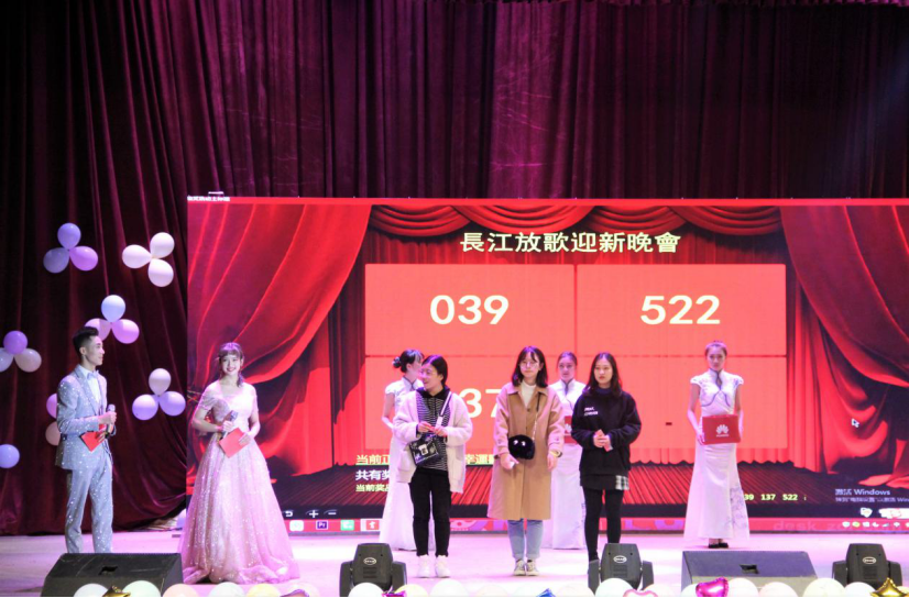 本次“长江放歌”主题迎新晚会结合我院特色,开创了演播台和现场主持相结合的新型晚会主持方式,主持人仪态端庄自然,举止优雅,与现场观众进行互动,场下的观众们气氛高涨,掌声雷动。