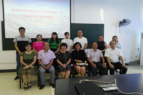 8月20日下午14时30分,中华全国新闻工作者协会书记处书记、党组成员王冬梅和中国青年报社副总编辑董时,在范长江纪念馆馆长段瑞明陪同下莅临范长江新闻学院考察交流。范长江新闻学院院长王祖明、党总支书记魏伟、副院长高卫红、副院长杨光辉及学院部分教师代表参加交流座谈会。