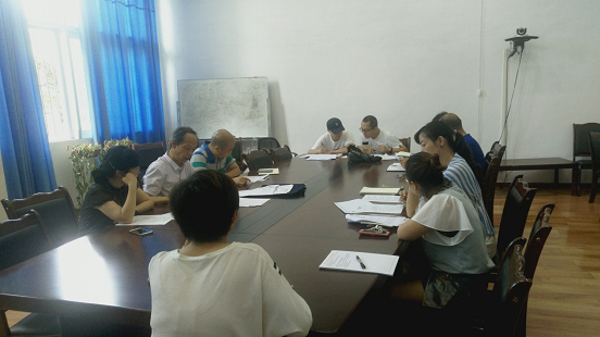 2018年8月25日上午9点整 ,我院在第三实验楼一楼会议室召开了评建工作检查预备会,会议由院长王祖明主持,党总支书记魏伟、副院长高卫红、副院长杨光辉以及两个教研室主任参加了本次会议。