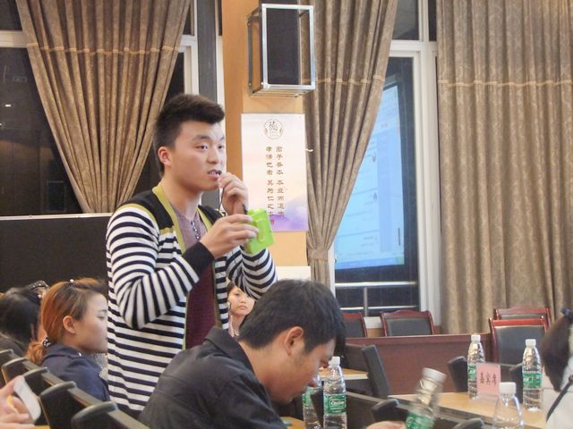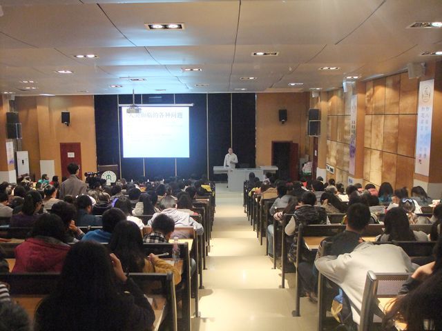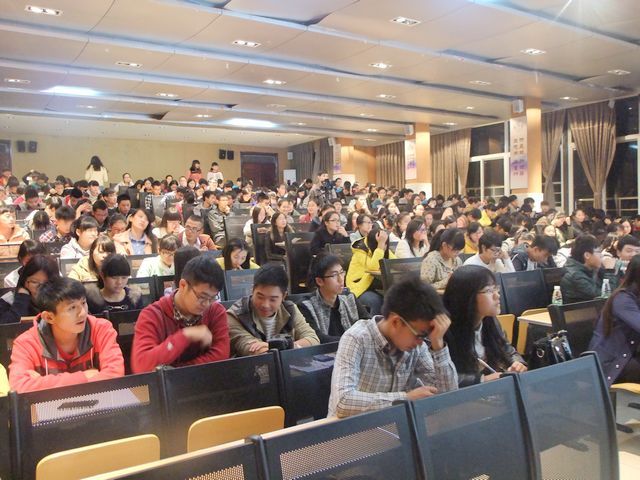 讲座结束时,对体育学院的王文举 “在风险社会要如何去做理性消费者”困惑,杨老师提出“自己要明白需要什么,再去选择、分析、判断,如果一味从众,别人怎么说就怎么做就不是理性的消费者。”(图/文 向忠连)