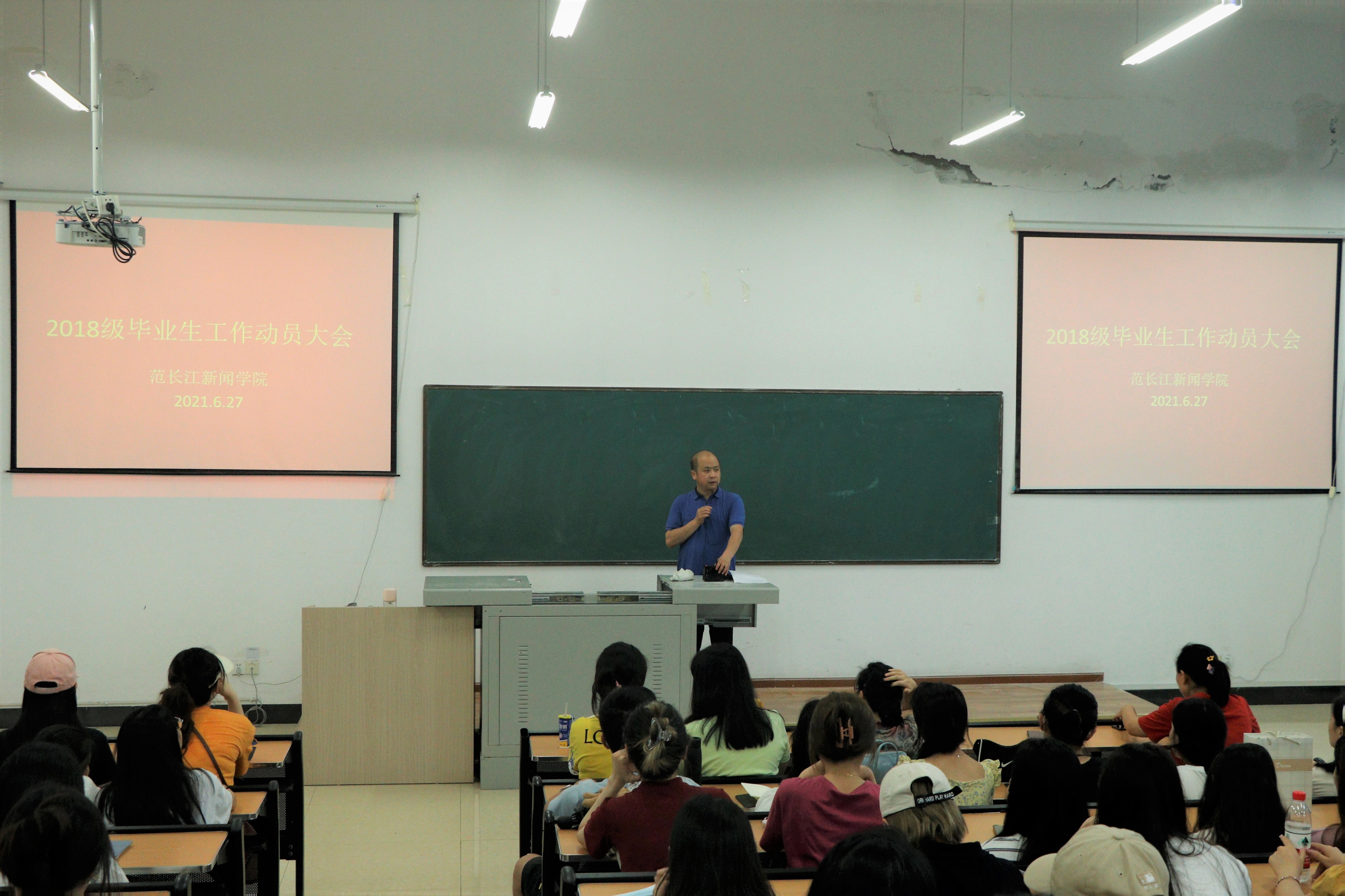 为进一步做好2018级学生实习工作顺利开展,就业工作稳中向前推进,2021年6月27日晚7点,我院在第三实验大楼531开展了2018级学生就业工作动员大会,此次大会由学院党总支书记魏伟主持,副院长高卫红、院长助理刘佳、学工办主任刘丽娜、辅导员李友莉、宋秋莹、18级各班班主任及18级全体毕业生参加此次大会。