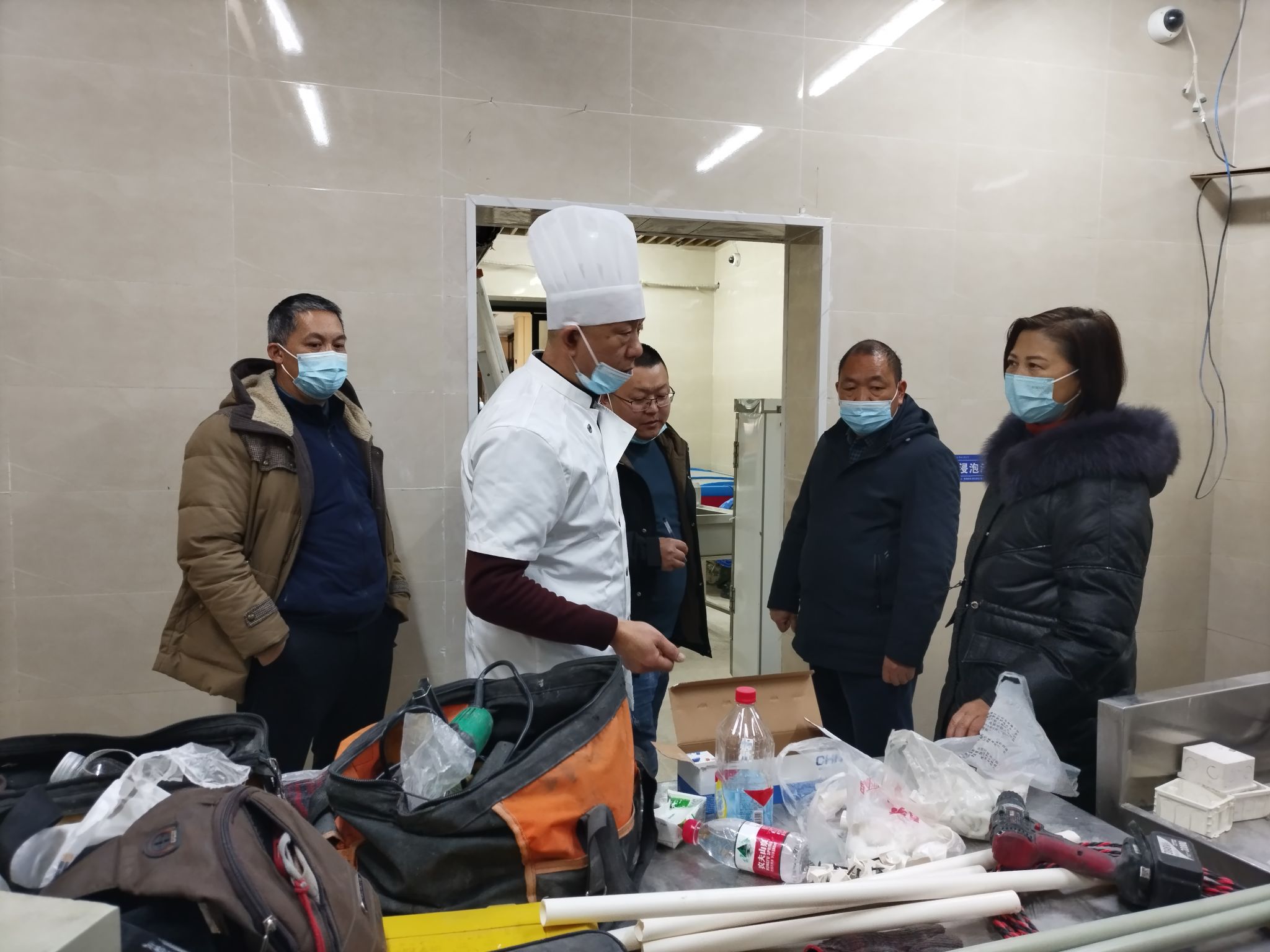 在一食堂,检查组对天然气改造、后厨操作间和储存仓库食品卫生、餐饮设备进行了全面检查,要求严格把关食品采购、储存、加工等环节,确保食品安全。