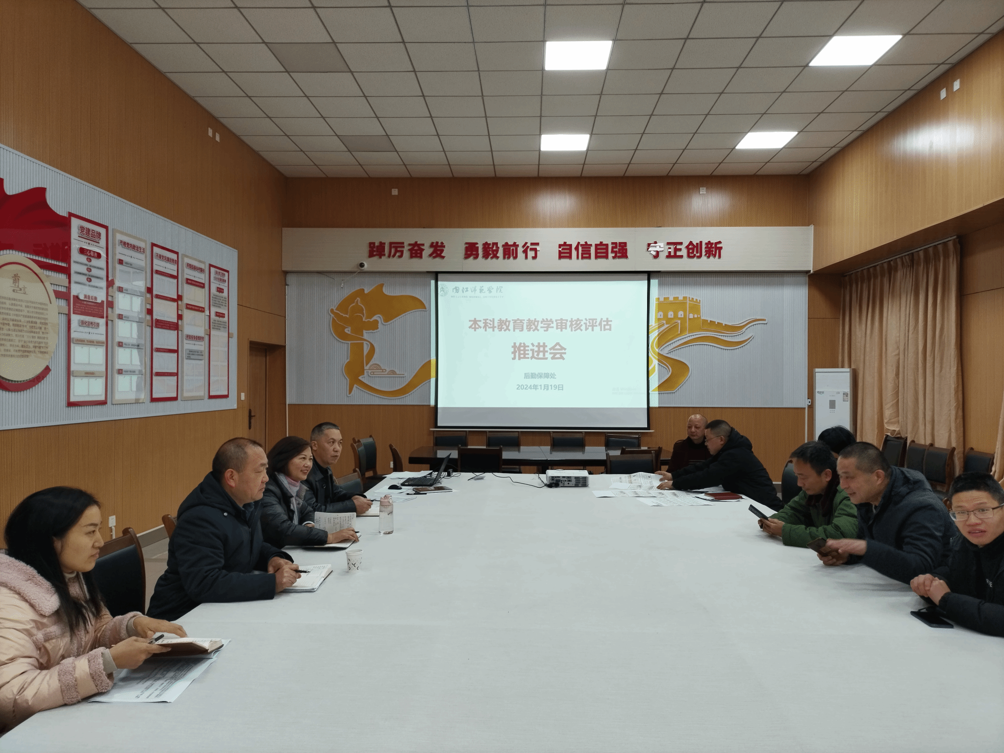 1月19日,后勤保障处在204会议室召开本科教育教学审核评估工作推进会,会议由处长徐大军主持。