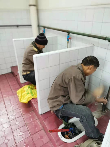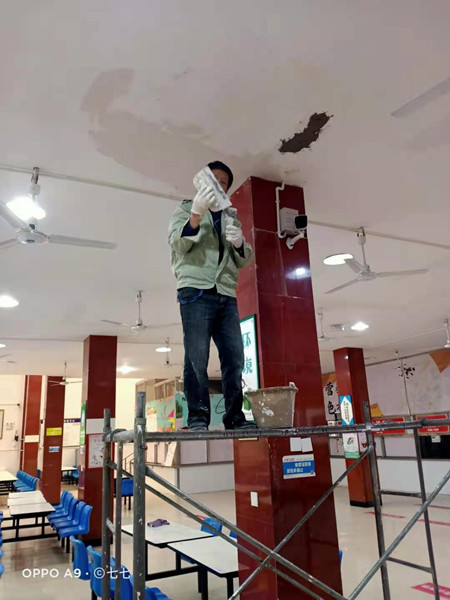 学生生活最重要,利用假期对学生宿舍和食堂的下水管道、墙面、地砖等进行疏通和修补。