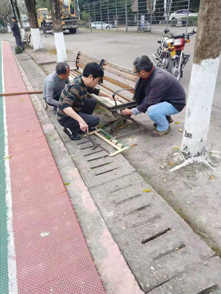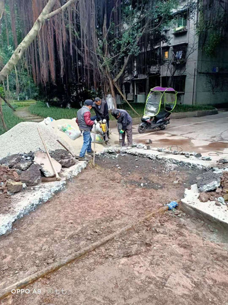 学校环境更美好,开学前对公共设施和破损道路进行维修。