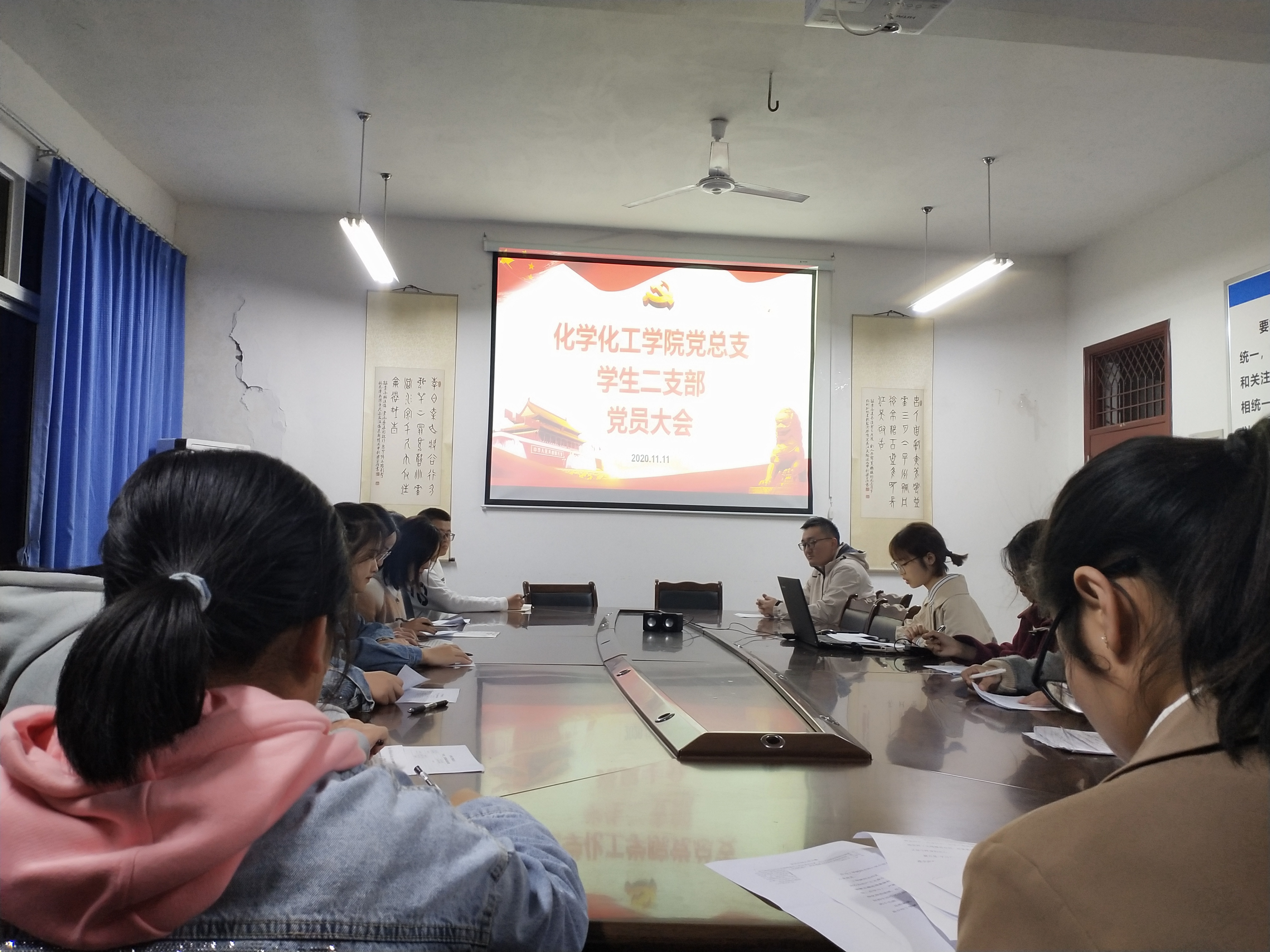 2020年11月11日晚7:00,我院党总支学生第二支部在学院会议室召开支部大会。本次会议主要围绕研究讨论2020年下半年党员发展及转正事宜展开。此次会议出席人员有学生第二支部书记黄犇,党支部的党员、预备党员、拟发展对象等。大会共六项议程: