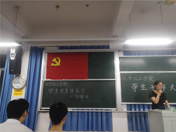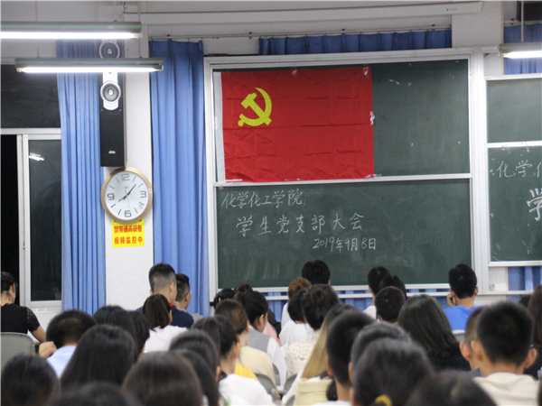 2019年9月8日20点化学化工学院学生党支部在五教南407召开了学生党支部大会。出席本次会议的有学生第二党支部书记陈陆、学工办辅导员黄犇、张言顺、张媛园,以及学生党支部的党员、预备党员等同志参加。