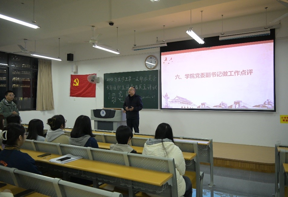 最后,学院党委副书记付孝锦同志对此次专题组织生活会进行了点评并指出:批评与自我批评是共产党员的优良传统,希望后续的党员互评环节能更加深入,以良好的政治素养推进支部工作持续良性发展。