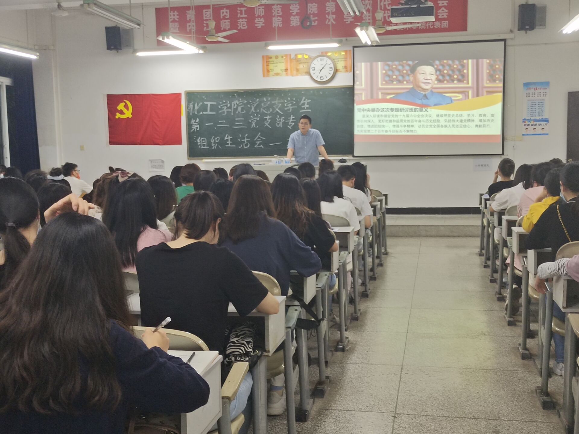 2022年3月15日晚7:00,我院党总支学生第三支部在五教北102开展了学习“习近平总书记在省部级主要领导干部学习贯彻党的十九届六中全会精神专题研讨班开班式上发表的重要讲话”专题组织生活会。学生第三支部书记张媛园和全体在校党员(含预备党员)参会,本次会议由学生第一、二党支部书记郑武主持。