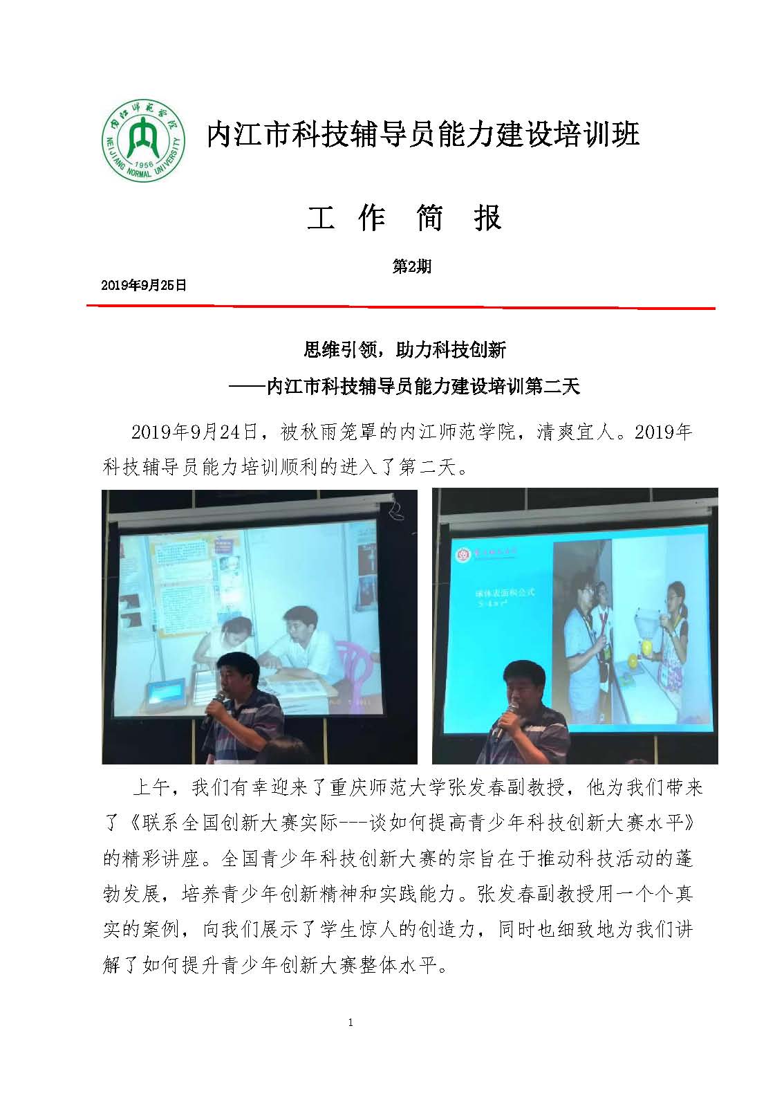 内江市科技辅导员能力建设培训班工作简报第2期