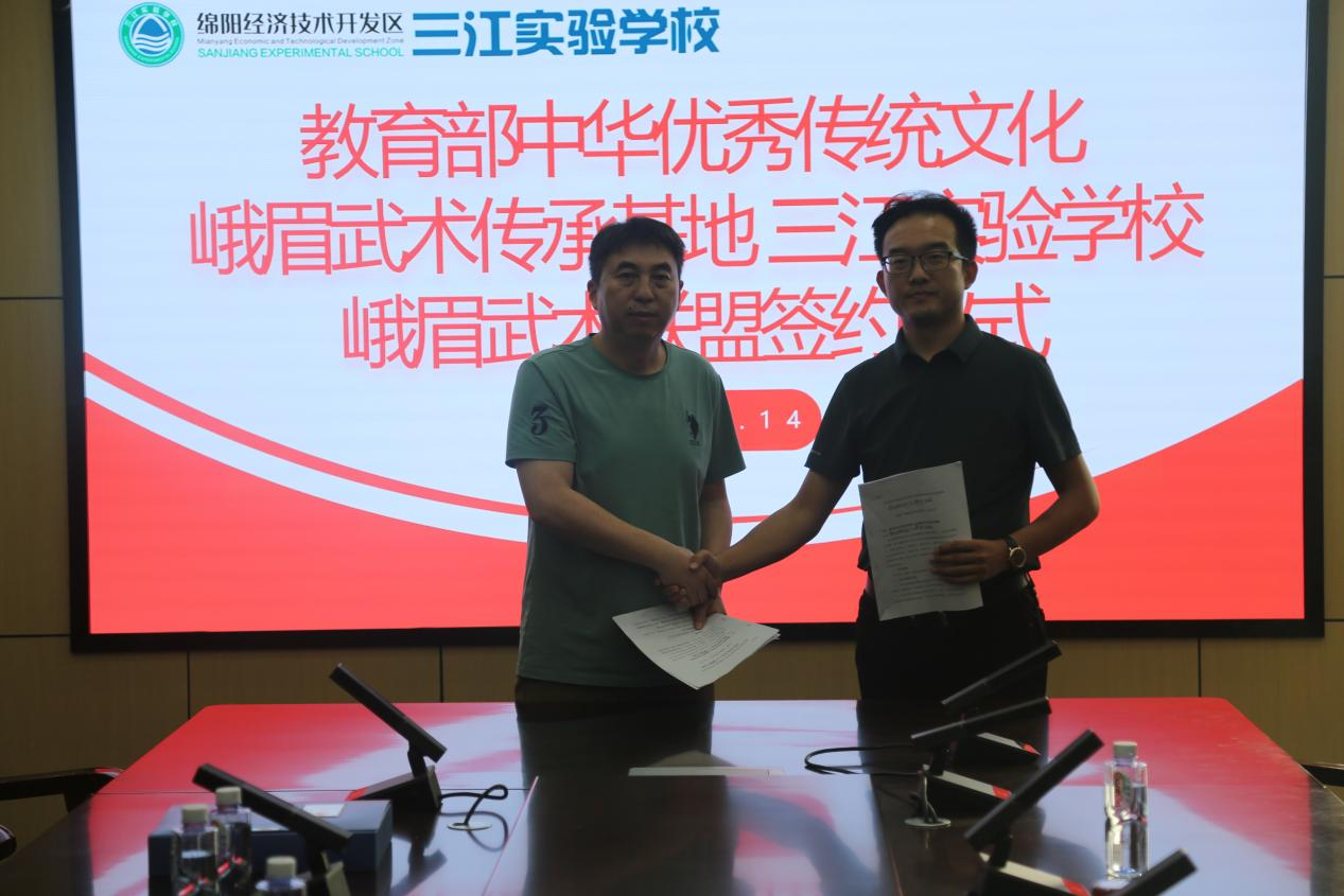 为传承和弘扬峨眉武术文化,加强高校与中学的合作交流,促进峨眉武术在校园的传承和发展,9月14日下午,教育部中华优秀传统文化峨眉武术基地与绵阳市经济技术开发区三江实验学校举行了共建“峨眉武术联盟”合作签约仪式和联盟示范单位授牌仪式。