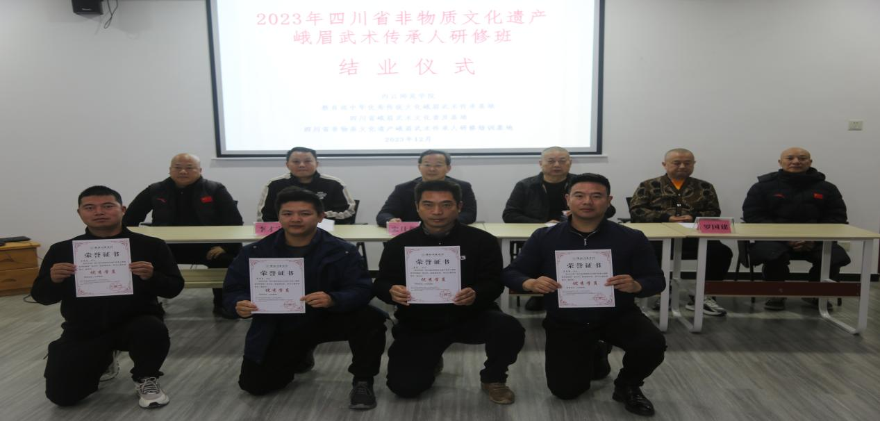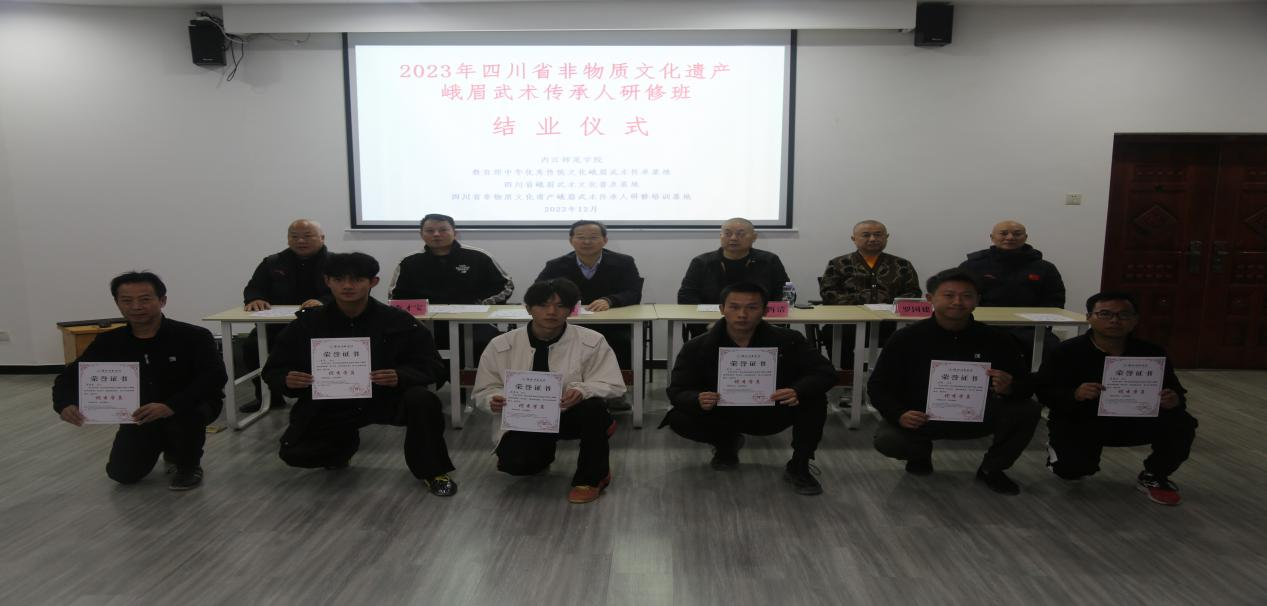 最后,史仕新副校长宣布“四川省非物质文化遗产传承人峨眉武术研修班”圆满结业。