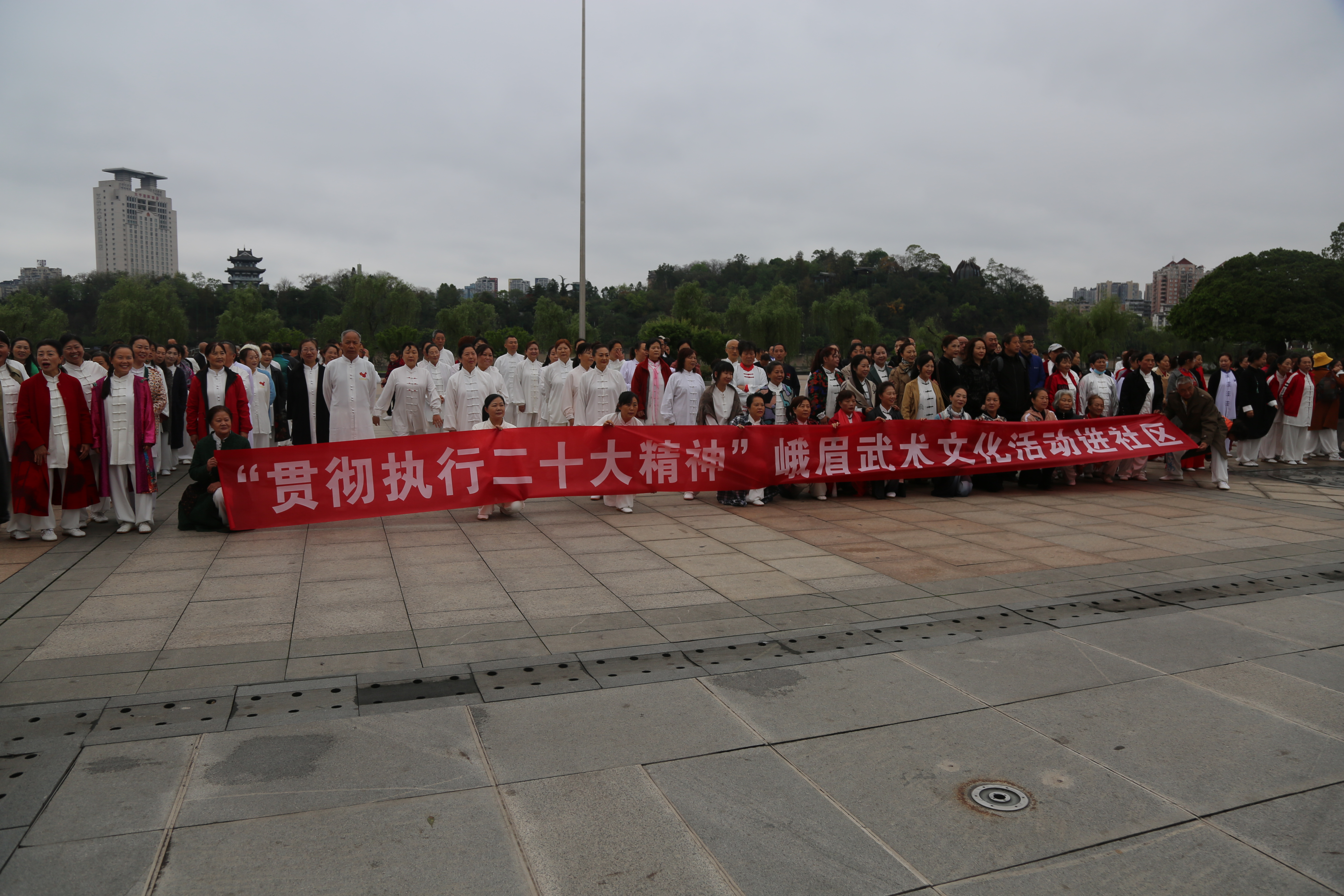 峨眉武术基地迎“五一”进社区展演活动于2023年4月23日在内江市市中区大洲广场隆重举行。本次活动由教育部中华优秀传统文化峨眉武术传承基地、四川省峨眉武术文化普及基地、内江市武术协会主办,旨在以迎“五一”劳动节为契机,组织内江市各武术协会会员近百人进行峨眉武术技法展演活动,让峨眉武术文化魅力绽放于群众之中,吸引更多人群参与到中华优秀传统文化的推广和传承当中,为峨眉武术文化发展作出贡献。