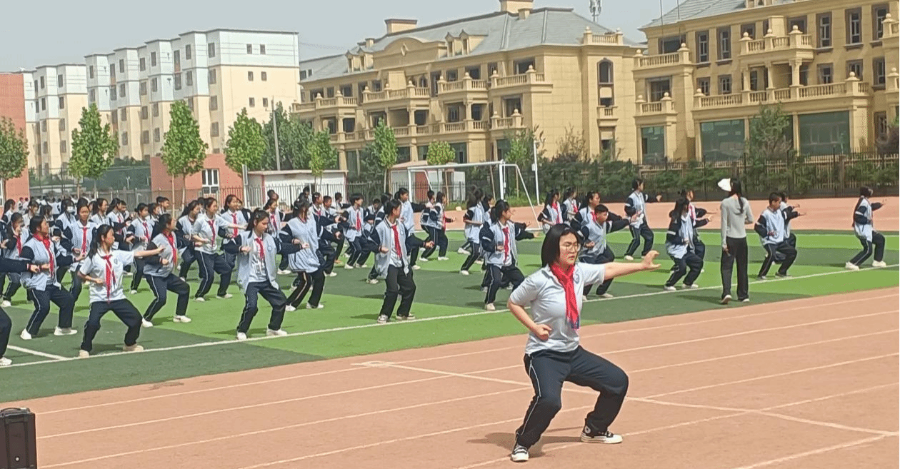 最后,杨老师还特别设计了集体项目创新编排的环节。他鼓励学生们发挥自己的创意,将所学的峨眉武术动作融入到集体表演中。这个环节不仅提高了学生们的团队合作能力,也让他们更加深入地体会到了中华武术的魅力。