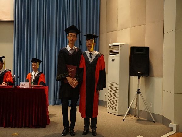 早9点整,毕业典礼正式开始。在全体起立奏唱国歌后,副院长张文与薛世华相继宣读了我院2014届获学士学位毕业生名单与省优秀大学生毕业名单。党总支书记黎昌金为省优秀大学毕业生颁发了证书。而后,在优美的音乐声中,院长蔡达峰教授为获的学士学位的代表们授予了学位,毕业生们与蔡院长微笑握手,真挚的鞠躬致敬并与蔡院长合影留念。接下来则分别由毕业生代表10级2班的卢军同学与在校生代表12级4班蔡鑫同学进行了发言。最后,在蔡院长幽默而寓意深刻的话语中,同学们收获颇多,对于即将踏入社会的他们来说,有着极其重要的启示与指引。
