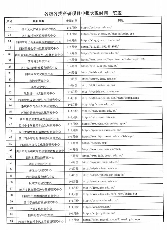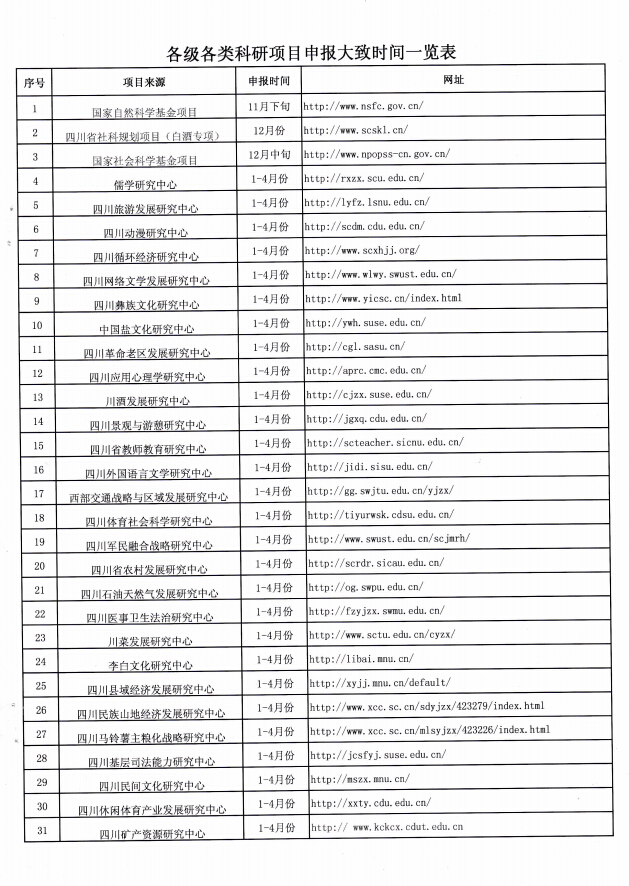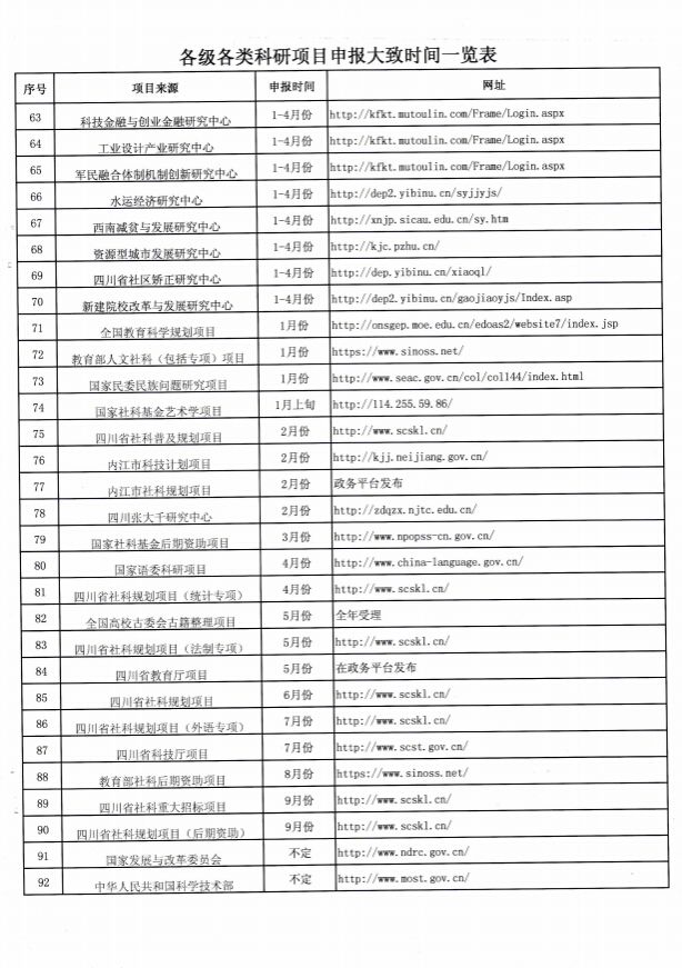 各级各类科研项目申报大致时间表