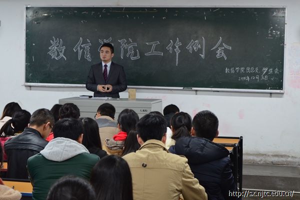 中午12点30分,数信学院团学第五次工作例会在一教205展开。出席此次例会的有数信学院辅导员吴畏老师,团总支副书记陈小睿、学生会主席林忠福、副主席胡静、副主席杨春雷、各班班委、各部门负责人及干事。本次会议由宿管部干事邹莉主持。
