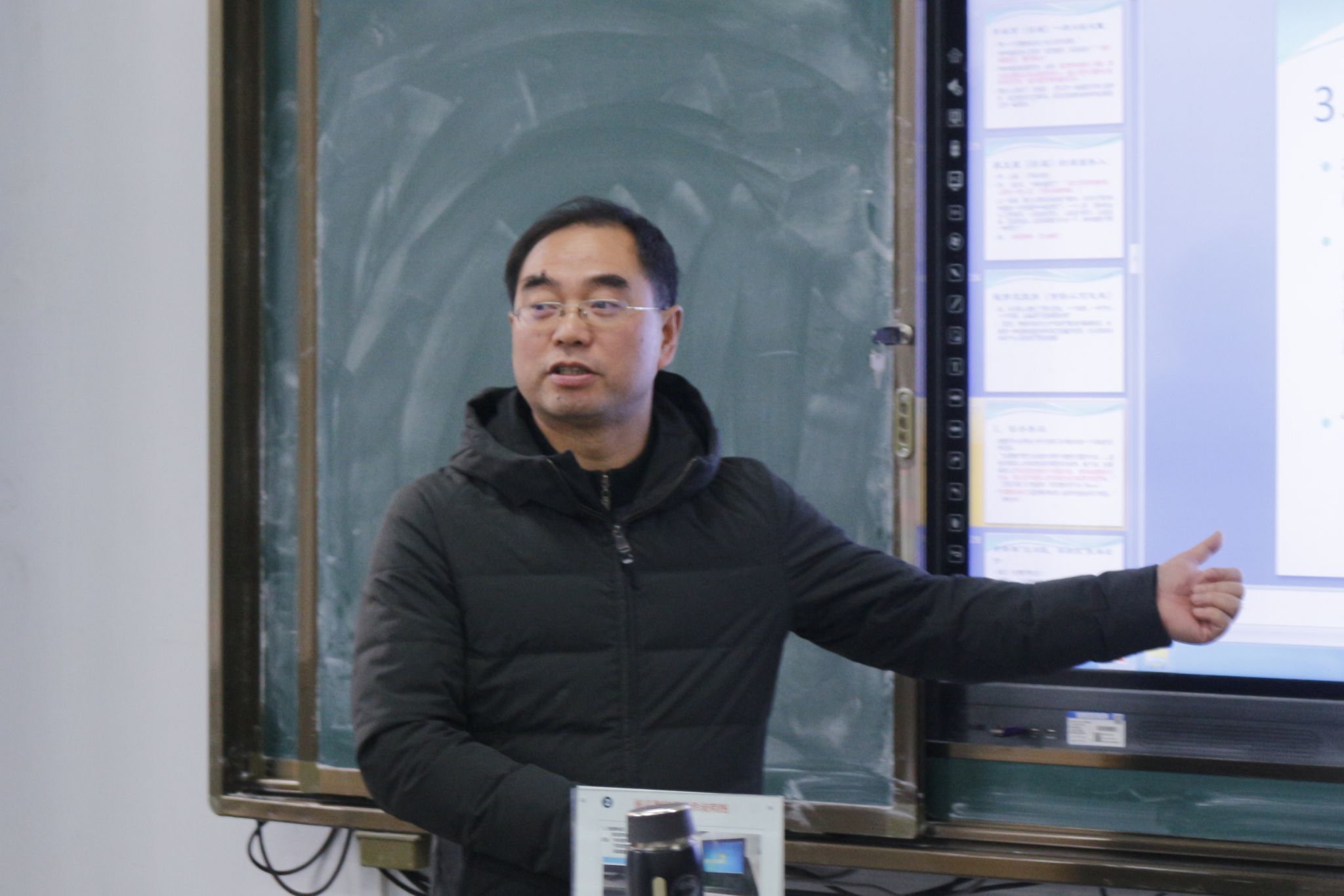随后,于教授为学员们展示了高效课堂在课堂实践和理论知识方面的改革成果,提出高效课堂的重要性。紧接着,他从学案导学、展示当家、合作互教、教学翻转四个方面讲解了高效课堂的主要教学策略,并通过举例证明策略的正确性和必要性。同时,他还提出了高效课堂要注意避免的几个极端化倾向,告诫学员们在教学过程中要避免教学学习化、效果知识化、课堂程式化、教师观众化。
