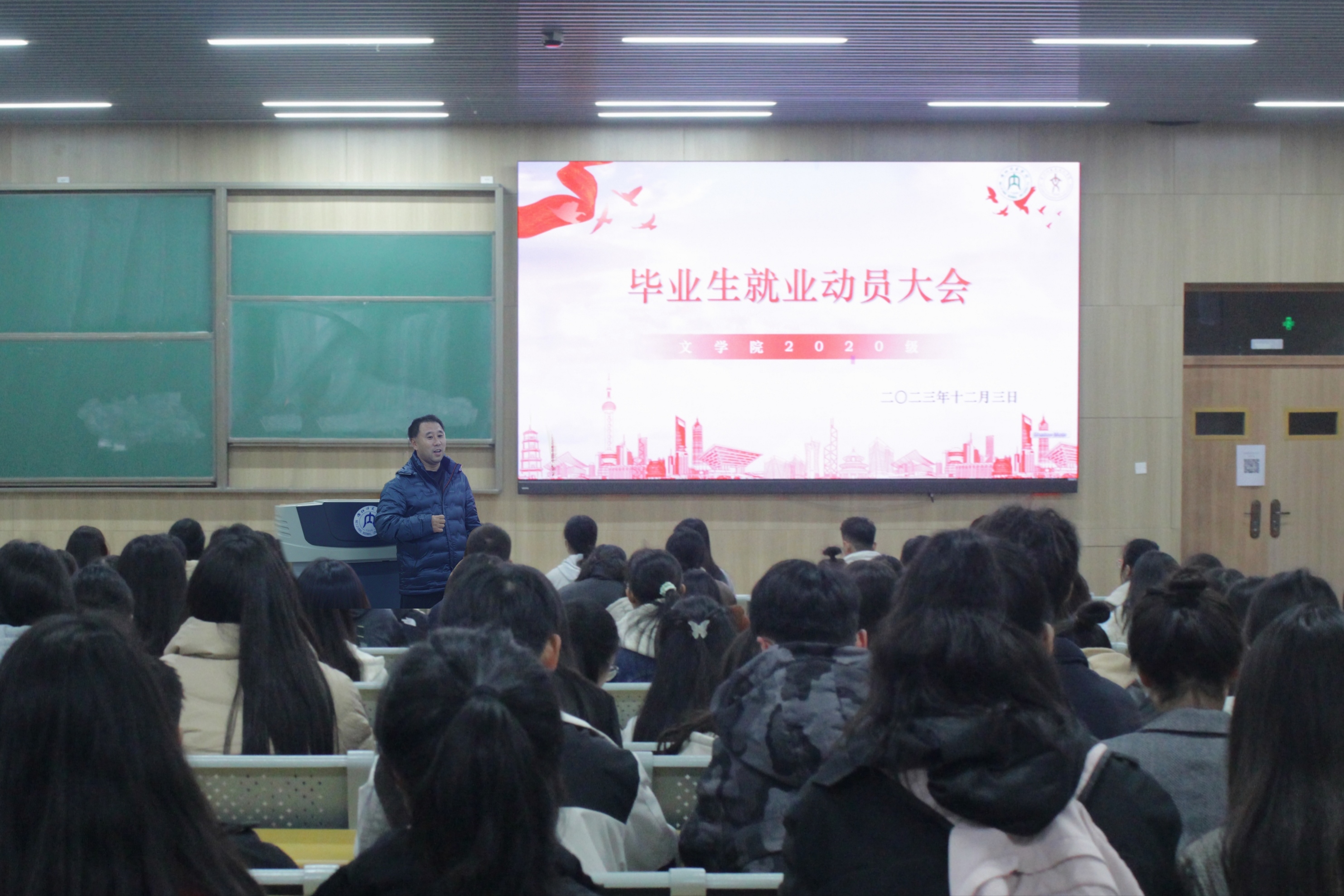 为帮助同学们树立科学正确的择业就业观,促进毕业生积极就业。12月3日晚上6点半,我院于明德楼B区112教室举行毕业生就业动员大会。本次会议由我院党委书记周艺,党委副书记、副院长(主持工作)梁明玉主讲,2020级部分同学参加。