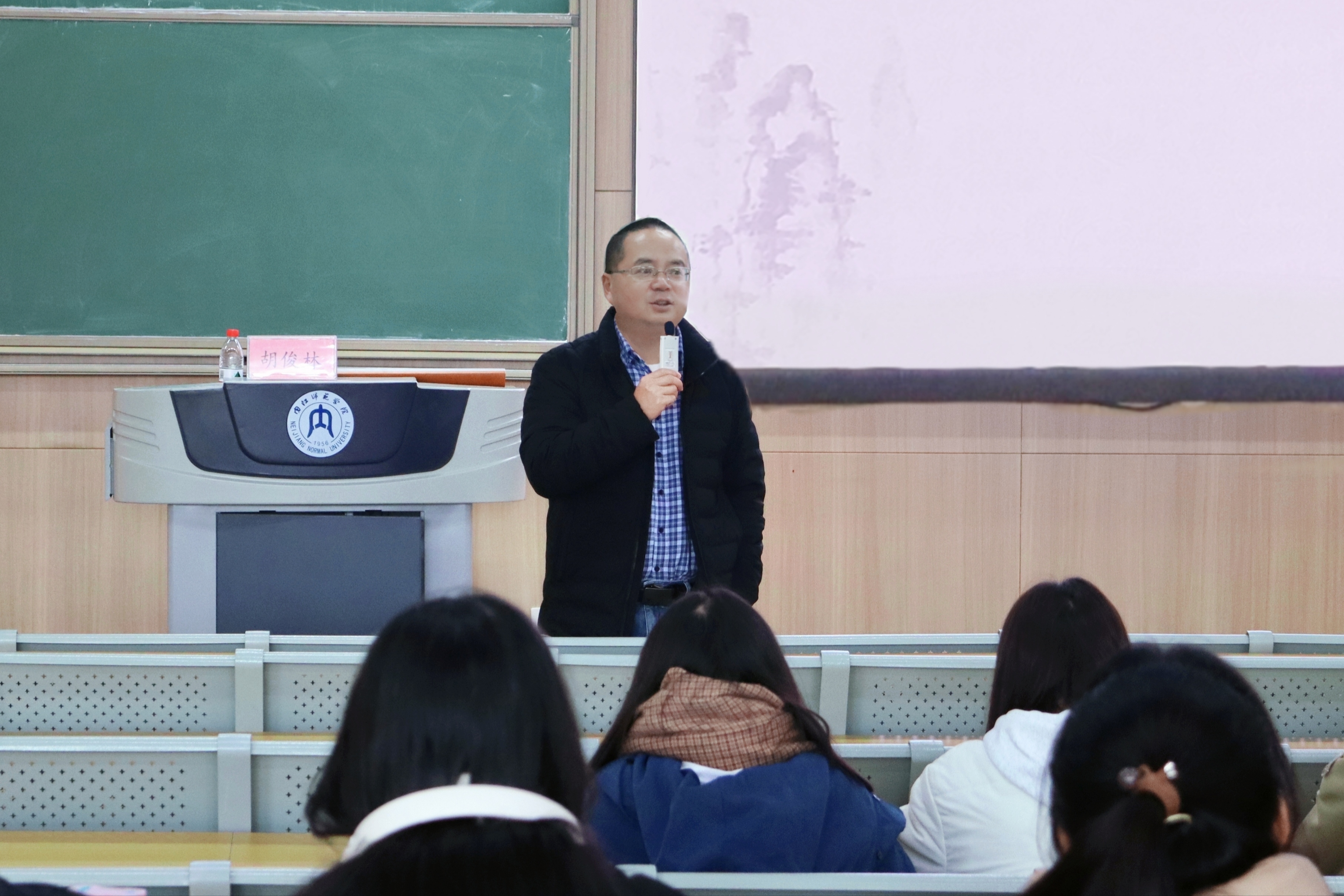 为增强我院学子阅读兴趣,进一步提升同学们的阅读能力,12月8日下午三点,我院于明德楼B区110教室开展了以“一生最爱是读书,书香洋溢沁人心”为主题的学术讲座。本次讲座由中华全国美学学会美育研究会会员,四川省美学学会理事胡俊林教授主讲,我院党委书记周艺出席,部分同学参与。
