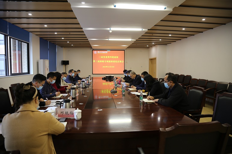 按照学校党委统一部署,2022年11月9日-11日,三届党委召开第四轮巡察情况反馈会,三个巡察组分别向体育学院党委、人工智能学院党委两个党组织、图书馆等八个被巡察单位反馈了巡察情况。校党委书记张志远,党委副书记、校长陈晓春,省纪委监委驻校纪检监察组组长、校党委副书记、纪委书记史仕新,党委副书记黄辉,副校长赵明、吴开腾、李益彬,党委组织部部长张浩分别参加了反馈会。