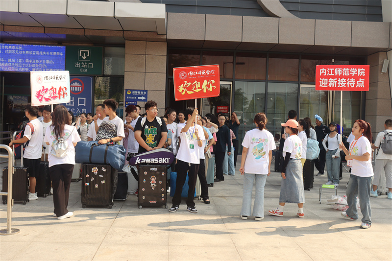 为更好地迎接新生的到来,最大程度地为新生提供便利,我校在内江北站、内江综合客运站、内江东站、高速公路客运站设4个校外新生接待点,每个接待点都配有大量志愿者,便于为新生提供全方位的帮助。校内校外均提供迎新专用大巴车共15辆,同时还在每一辆大巴车上安排解说员为新生及新生家长们介绍学校情况。校内还设有“新时代 新征程 用青春书写人生华章”“新学期 新起点 用奋斗告白伟大祖国”等迎新标语,现场迎新氛围十分浓厚。