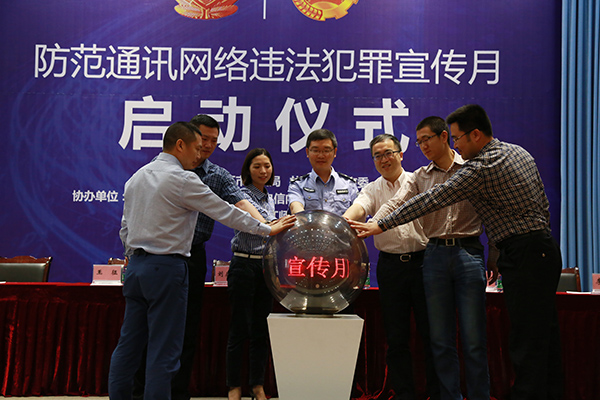 随后,出席活动的全体领导及嘉宾共同按下启动球,此次防范通讯网络违法犯罪宣传月活动正式开始。