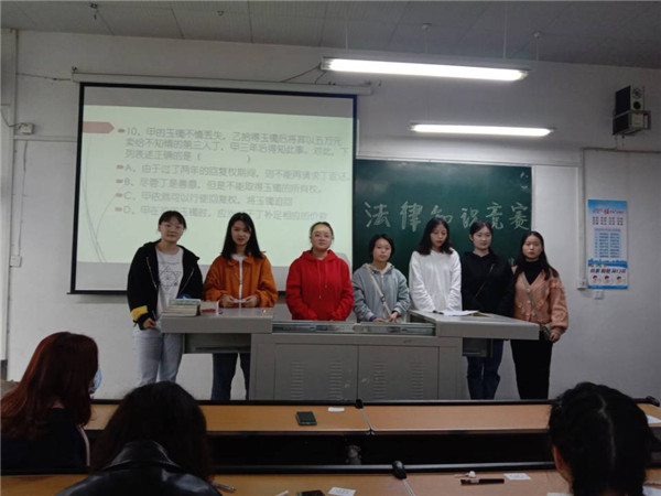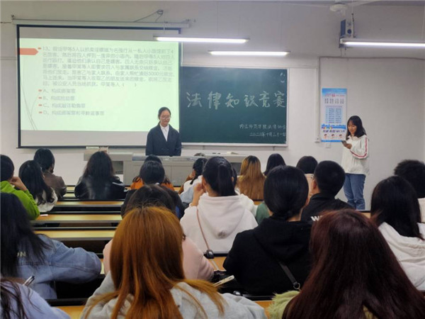 2020年10月31日,内江师范学院法律协会于第一教学楼307教室举办了法律知识竞赛活动。本次活动旨在提高当代大学生的法律意识,营造一个知法,懂法,守法,用法的和谐校园氛围。
