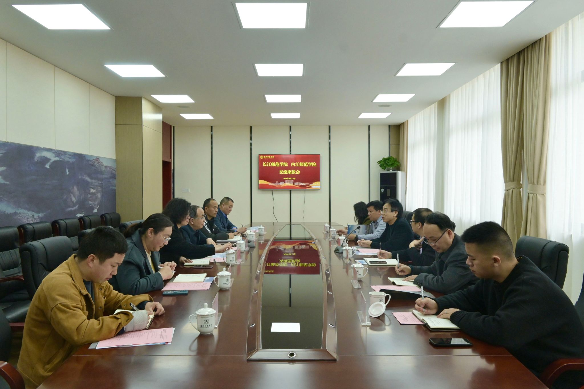 杨双对我校的热情接待表示感谢,他简要介绍了长江师范学院的办学情况,阐述了目前工作推进过程中存在的难点。杨双表示,希望通过此次调研,学习内江师范学院在办学方面的特色做法和创新举措,以促进川渝两地高校协同发展。