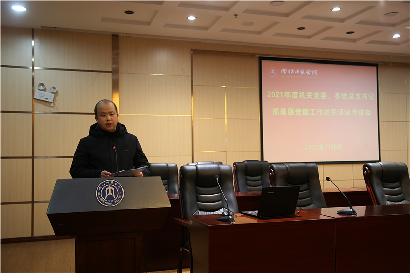 为全面贯彻习近平新时代中国特色社会主义思想,认真落实新时代党的建设总要求,坚持和加强党的全面领导,落实管党治党政治责任,推进全面从严治党向基层延伸,扎实推进全校基层党的建设各项工作落地落实,1月6日下午,学校党委在行政楼317会议室召开党委常委(扩大)会,听取2021年度各党总支书记抓基层党建工作述职并评议考核。内江市委组织部部务委员李定国同志、市委基层治理办城市治理工作科副科长赵云同志莅临指导。会议由校党委书记张志远主持。