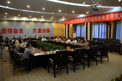9月14日下午3点,我校与内江市质量技术监督局战略合作框架协议签字仪式在多功能会议厅举行。市委常委、宣传部部长潘梅,我校校长谢峰、党委副书记高宁、副校长黄辉以及市质监局局长郑平、副局长郑祖明等出席了仪式。签字仪式由高宁副书记主持。