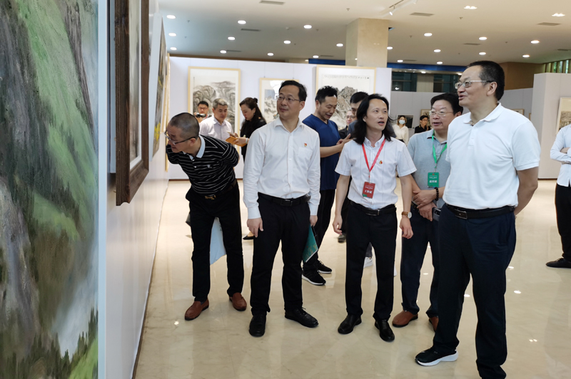 仲夏时日,万物繁茂。6月10日上午,由四川省社会科学界联合会和内江师范学院主办的“践行新发展理念——绿水青山·美丽沱江”书画作品展在成都天府新区的四川社会科学馆隆重开幕。四川省教育厅、四川省社科联、四川博物院、川渝地区兄弟高校多名领导出席开幕式并观看展览。开幕式由学校党委常委、副校长郭云东主持,学校党委副书记、纪委书记史仕新致欢迎词,中国美术家协会会员、国家一级美术师、四川香格里拉彩墨画研究院院长邱笑秋发言,四川省社科联党组副书记、副主席罗仲平宣布展览开幕。