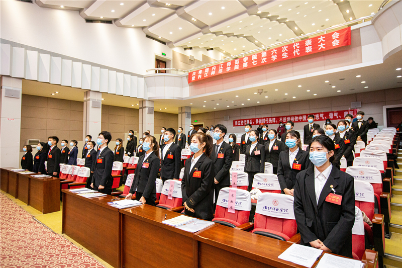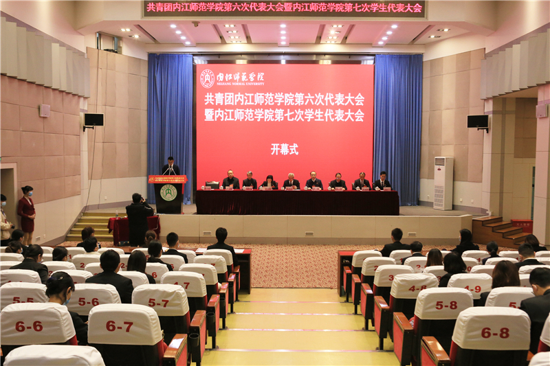 团旗飞扬迎盛会,青春闪亮耀内师。在中国共产党成立一百周年之际,在“十四五”规划开局之年,在校党委和上级团学组织的亲切关怀下,共青团内江师范学院第六次代表大会、内江师范学院第七次学生代表大会11月20日在第一学术报告厅隆重召开。共青团内江市委副书记刘庭秀,校工会负责人龚彬应邀出席大会。校党委书记张志远,校党委副书记黄辉,校党委常委、组织部部长张浩,校党委常委、宣传部、统战部部长张红扬,党委学生工作部部长商林威出席开幕式并在主席台就坐,165名团代会代表、191名学代会代表参加大会。