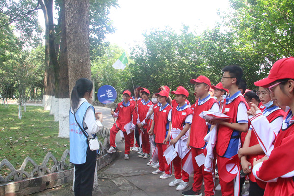 上午8时,研学实践课在内江一中初一学生的欢呼中正式开始。政治与公共管理学院主讲教师和助教老师各就其位,分发马甲、帽子、标签等课程用品,为本次研学实践课顺利的开展做好了充足的准备。四堂课程分别由叶昕妍、肖寰、胡慧、廖欣楠主讲,每一位主讲教师凭借扎实的备课,风趣生动地介绍了张大千、赵贞吉、苌弘等家乡名人,充分调动了学生的积极性,激发了学生对本次校园文化之旅的好奇心。与此同时,助教老师分工明确,有条不紊的维持纪律、保证学生的安全,这也为本次校园文化之旅的圆满完成奠定了基础。内江一中的同学们感想颇丰,在课程结束后,纷纷表示对家乡名人的喜爱之情,同时也愿意为家乡的发展贡献自己的一份力量。