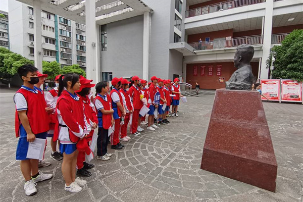 内江一中七年级的同学们分为八个连队,在范长江新闻学院广场集合并举行了开营仪式。内江师范学院教授李达伟、内江一中副校长罗君华、教师代表、学生代表依次发言,表达了此次活动重要性,并对此次活动充满期待。随后第一批同学围绕在我院广场上的范长江先生青年时期的铜像周围,听讲范长江先生在内江的深远影响以及“范长江新闻学院”这块金字招牌的来之不易,被范苏苏先生想要将父亲的名字留在家乡的深切愿望深深感动,使一中的同学们感到了强烈的家乡荣誉感与自豪感,引起了同学们努力学习奋发向上,建设更美内江的强烈热情。