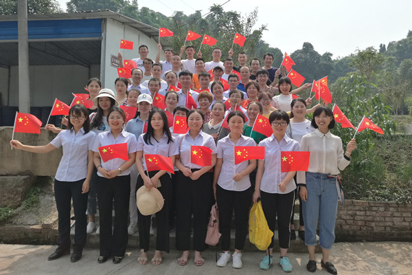 新中国成立70周年诞辰之际,为隆重庆祝“祖国的生日,人民的节日”,增强全体职工爱党爱国的情感,展望更加美好的未来, 2019年9月29日上午11:00到18:00,内江师院资产经营有限责任公司组织全体职工在内江市东新区陡坎瀑布农家乐举行了庆祝活动。活动由公司董事长李达伟和副总经理李丙龙带领,除个别坚守岗位的员工外都参与了。