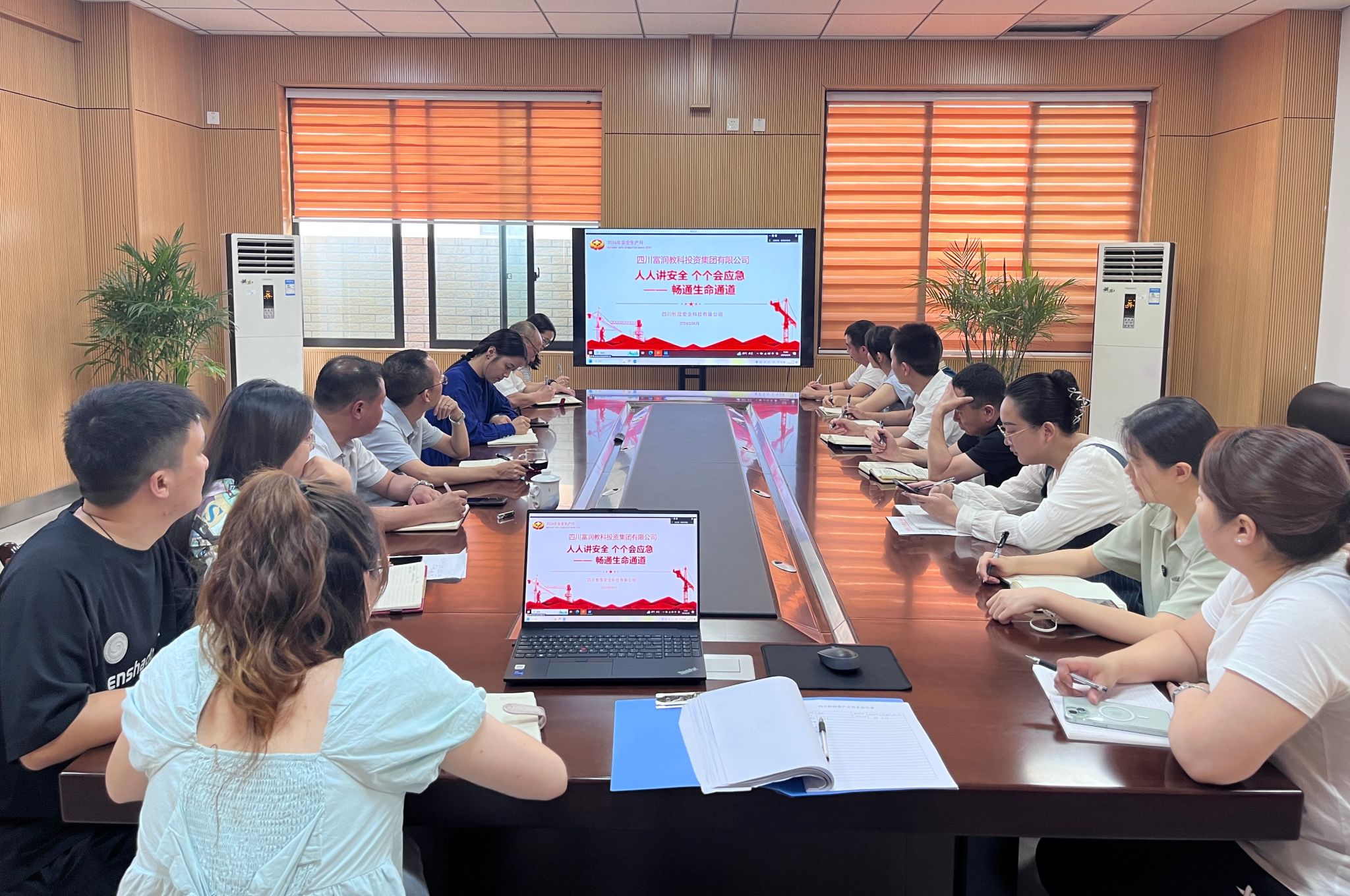 6月28日下午资产公司领导班子成员、和运公司和综合部全体员工在资产公司会议室以线上视频会议方式参加了由四川富润教科投资集团有限公司组织的线上安全生产工作培训会。