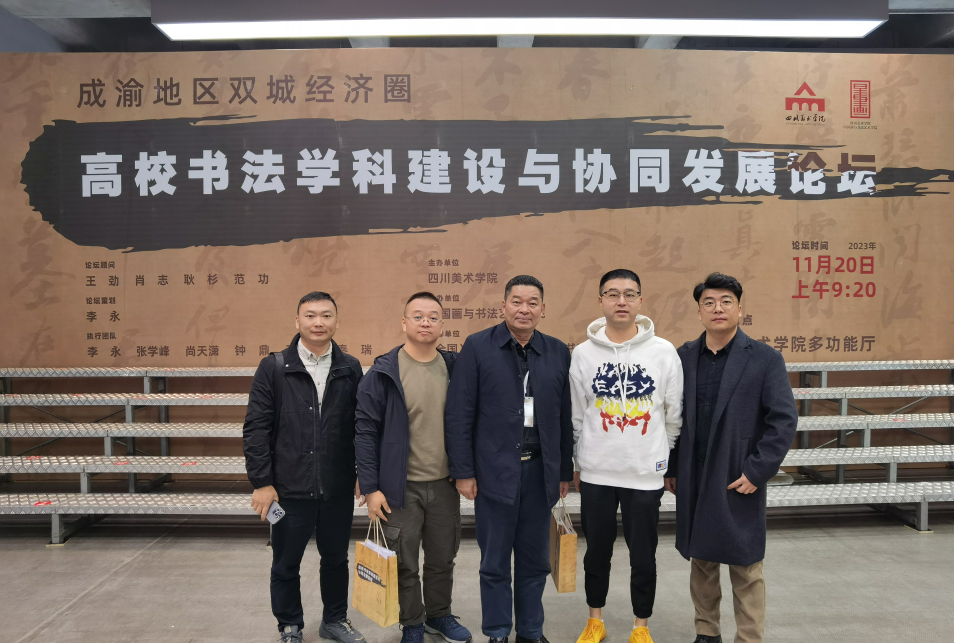 2023年11月20日,张大千美术学院副院长罗真及书法负责人钟建明教授带领我院书法教师彭贵军、邹国力、石恺参加了由四川美术学院中国画与书法艺术学院主办的“成渝地区双城经济圈高校书法学科建设与协同发展论坛”。