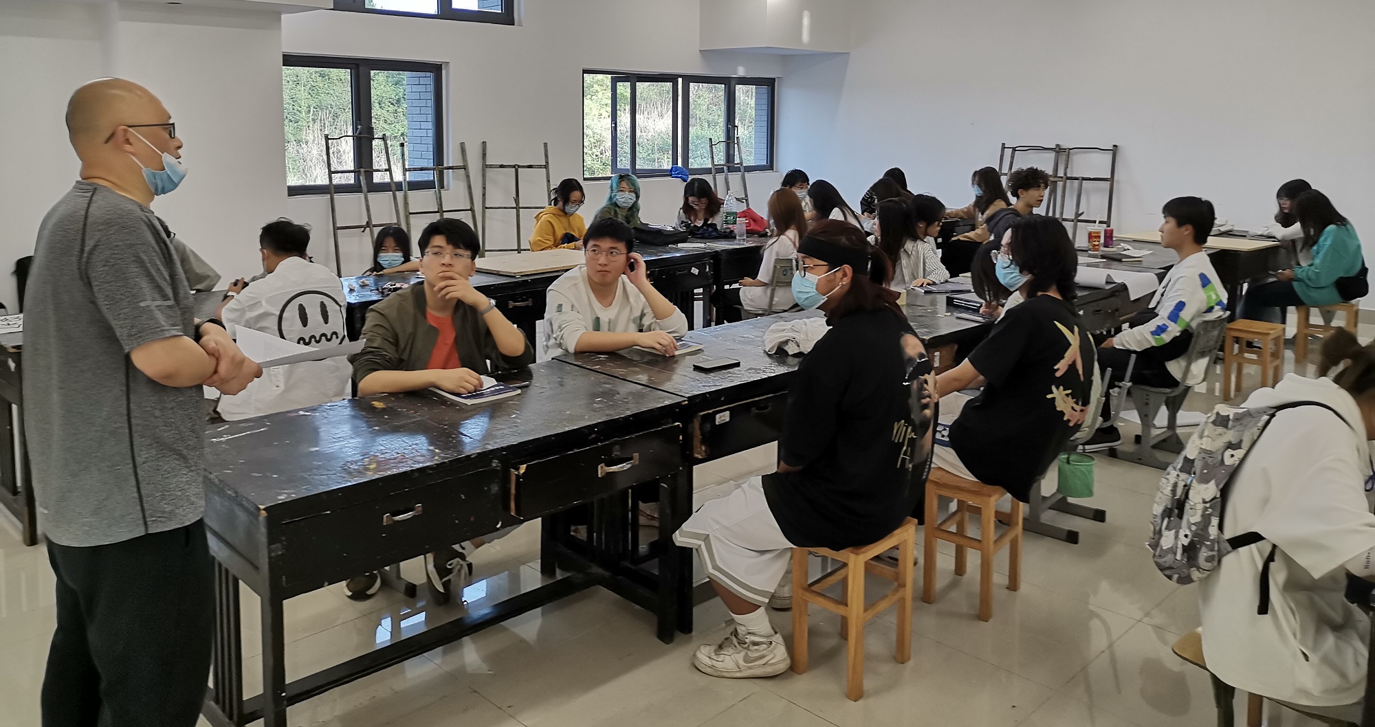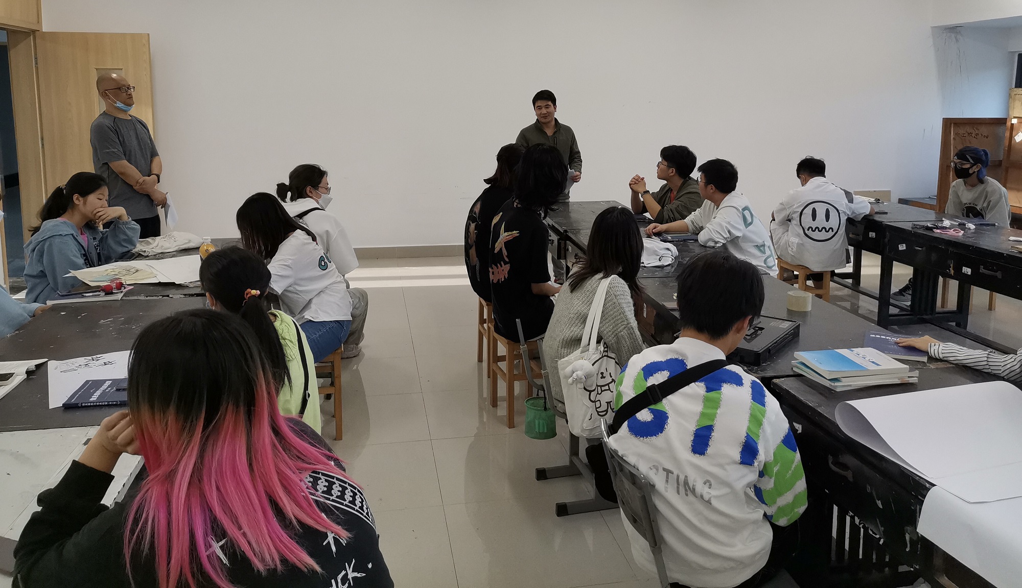 高登明副院长首先到联系班级旁听了专业课程。课上,同学们积极与老师互动,探讨专业问题,仔细做好记录。听课结束后高登明副院长结合前面的听课内容开展了“学习分享”主题讲座,并参与了班级班会。在讲座上,高登明副院长讲到,11班作为动画专业,在日常学习生活中要多了解自然风光、民风、民俗、建筑、历史文化等视觉为主的元素,要理解自然之中符号的内涵、色彩的变化、造型的寓意、民族的气质等自然情怀与历史传承,要掌握收集、整理素材的方法,注重设计素材与理念设计的结合,学以致用。在班会上,高登明副院长鼓励同学们在日常学习中要善于与老师互动,做好自身发展规划。最后,高院长在几名同学的陪同下对学生宿舍进行了走访。高院长仔细查看了宿舍内的基础设施,询问了同学们对宿舍生活的相关问题,强调了宿舍用电安全,叮嘱同学们要严格遵守宿舍规章制度,共建和谐宿舍。