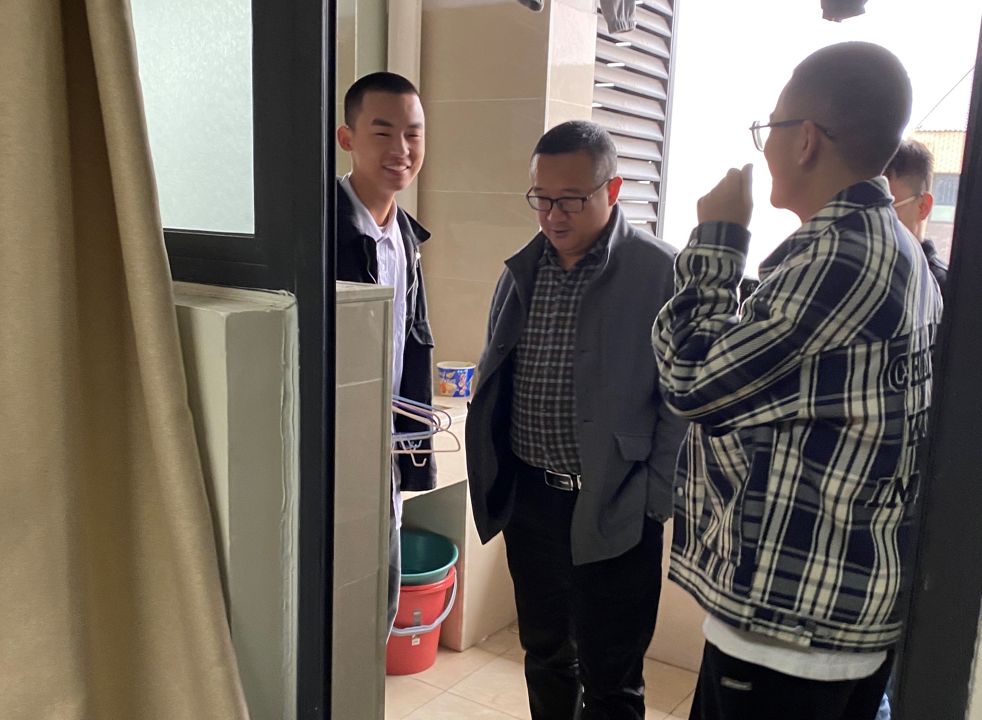 4月17日,为全面了解学生在校生活情况,杨坤教授走访了联系班级学生寝室。杨坤教授首先参观了新校区学生寝室的生活基础设施情况,详细询问了宿舍设施的使用情况,并强调了对于公共设施设备的爱护。杨坤教授讲到,寝室是一个公共区域,寝室四人一定要相互营造一个温馨舒适干净整洁的环境,要高度重视寝室的用电用火等安全问题,严格遵守学校相关规章制度,不使用大功率电器,不私自篡改电路,不在寝室内使用明火等。走访的最后,杨坤教授在寝室跟同学们分享自己的大学宿舍生活,提醒同学们要注意同学之间的相处,一定要珍惜在一起努力拼搏的四年学习生活。
